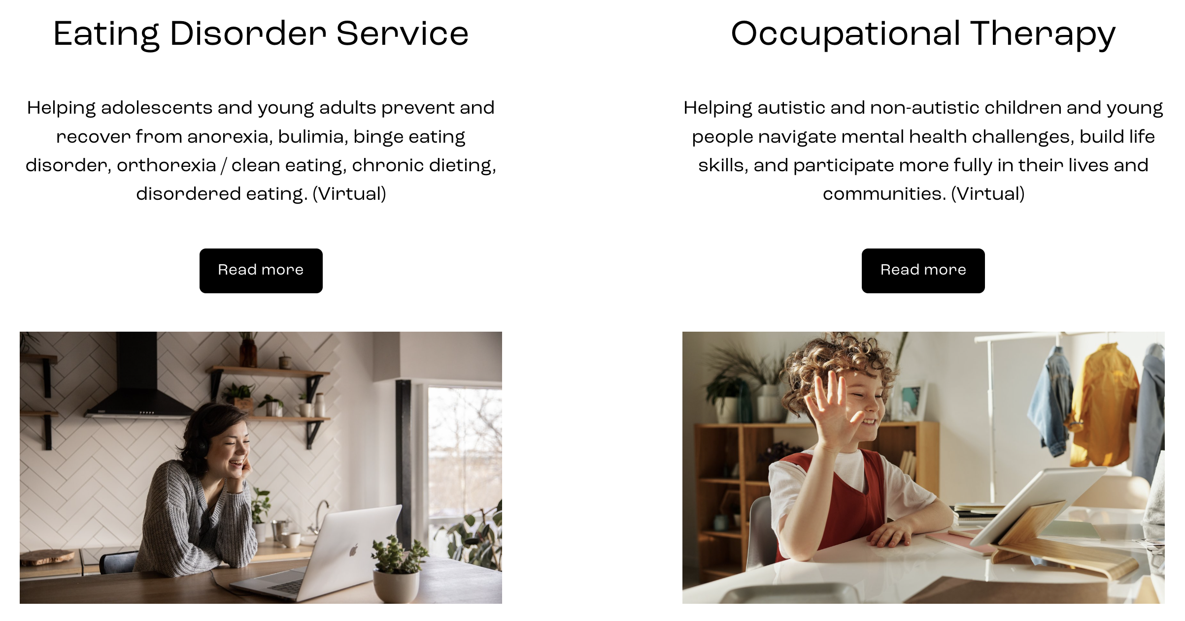 Project: Private Practice Website Client: My own businessRole: Copy Writer More private practice web pages: Eating Disorders Services Back to my portfolio page.